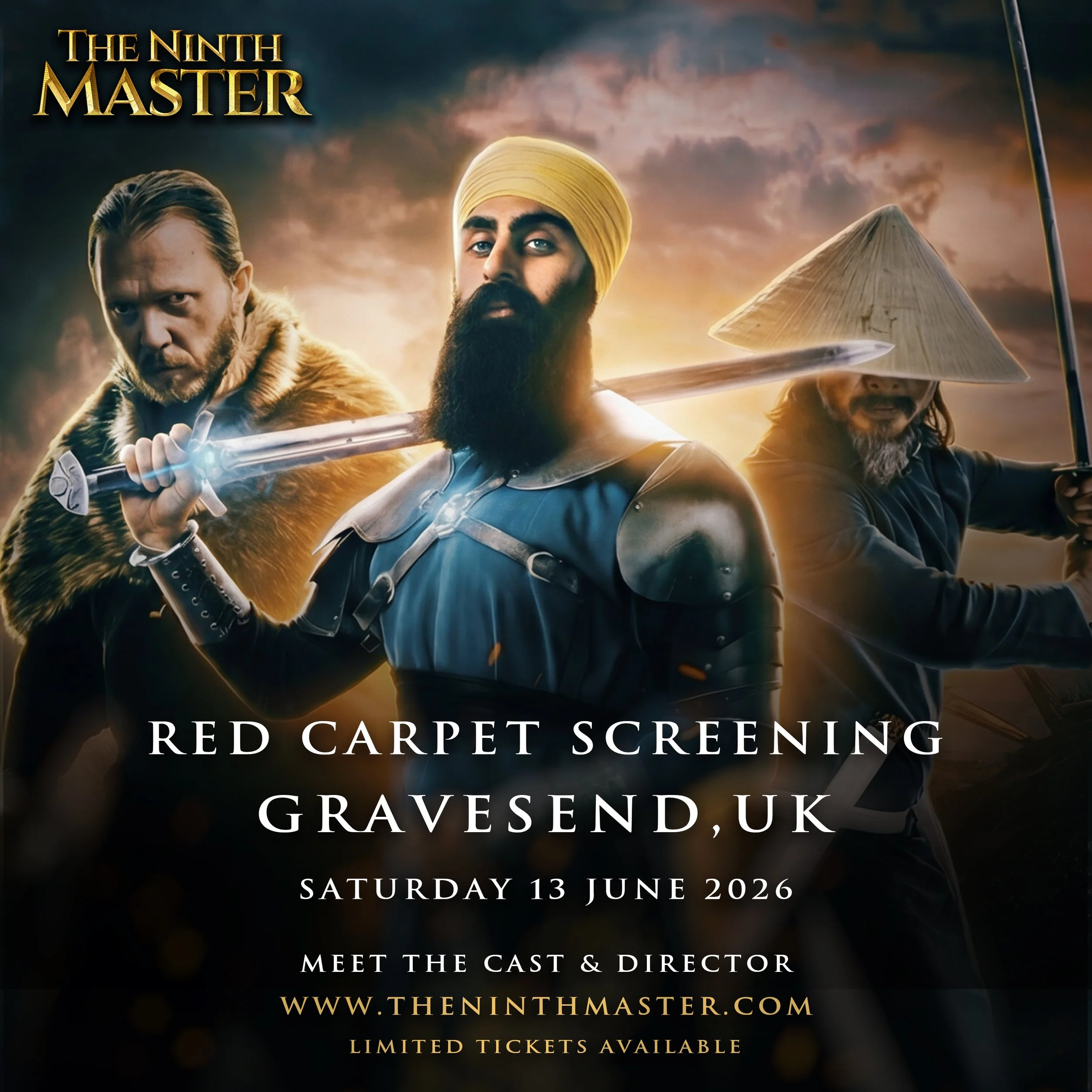 Upgrade to VIP: A limited number of VIP Premier Tickets are available, which include a complimentary The Ninth Master T-shirt (free UK shipping), plus priority access to meet the cast and director.